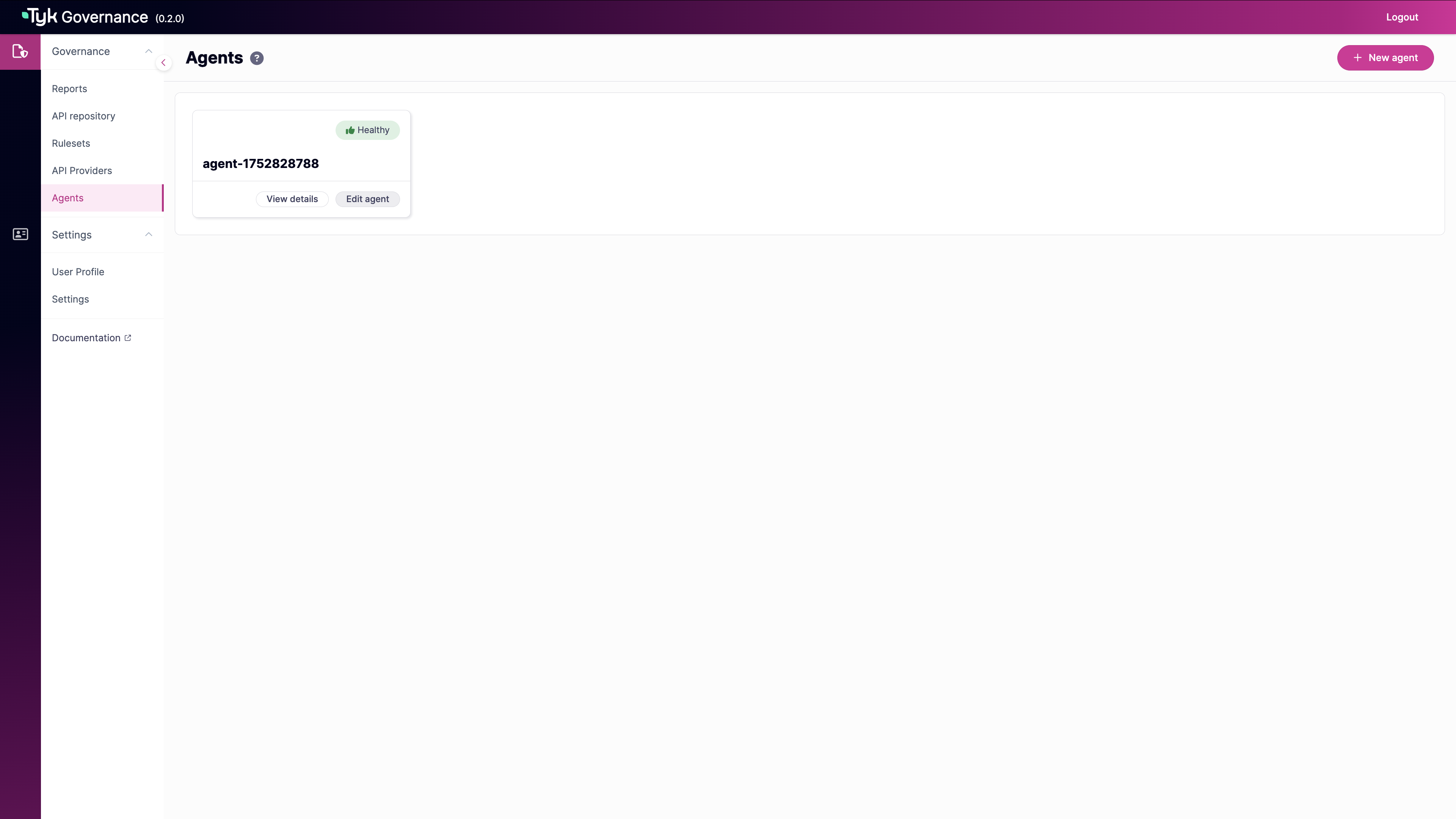 For environments where you need to install agents manually (non-Tyk platforms or on-premises deployments), follow these steps: Prerequisites for Agent Installation:- Access to the Governance Hub to generate agent tokens